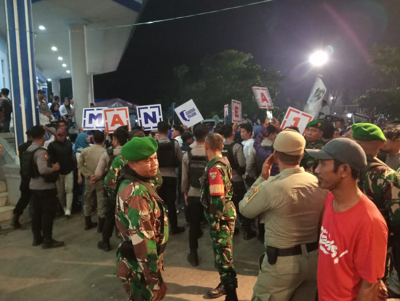 Personel gabungan ditempatkan baik di dalam ruang debat maupun di luar gedung untuk menjaga ketertiban. Selain itu, dilakukan penyekatan agar pendukung Paslon yang hadir memberikan dukungan tidak saling berdekatan, menghindari kemungkinan gesekan yang dapat memicu hal-hal yang tidak diinginkan.