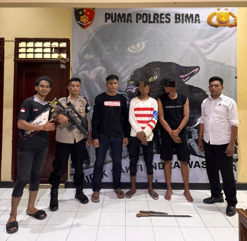 Kapolres Bima AKBP Eko Sutomo S.I.K.,M.I.K., melalui Kapolsek Monta Iptu Sudarto SH mengatakan ke-dua terduga warga desa Tangga Masinng masing berinisial AR (34) dan AS 29 diamankan di Kecamatan Bolo saat kabur usai melakukan pembacokan/ penganiayaan.