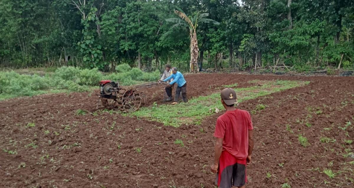 Bripka A. Rafik tidak saja melakukan monitoring namun ia juga ikut melakukan pembajakan lahan milik warga Binaannya yang akan di tanami sayuran.