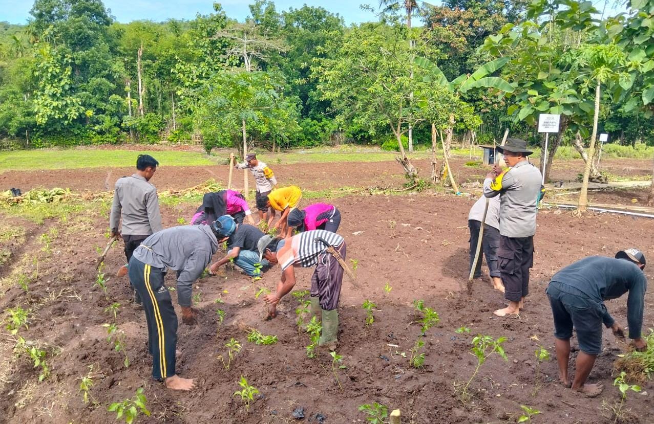 Bima, NTB (14/12) – Polsek Parado Polres Bima Polda NTB dan Bhayangkari Ranting Parado berupaya untuk mensukseskan program ketahanan pangan dengan cara menanam tanaman yang digunakan untuk memenuhi kebutuhan pangan Masyarakat.