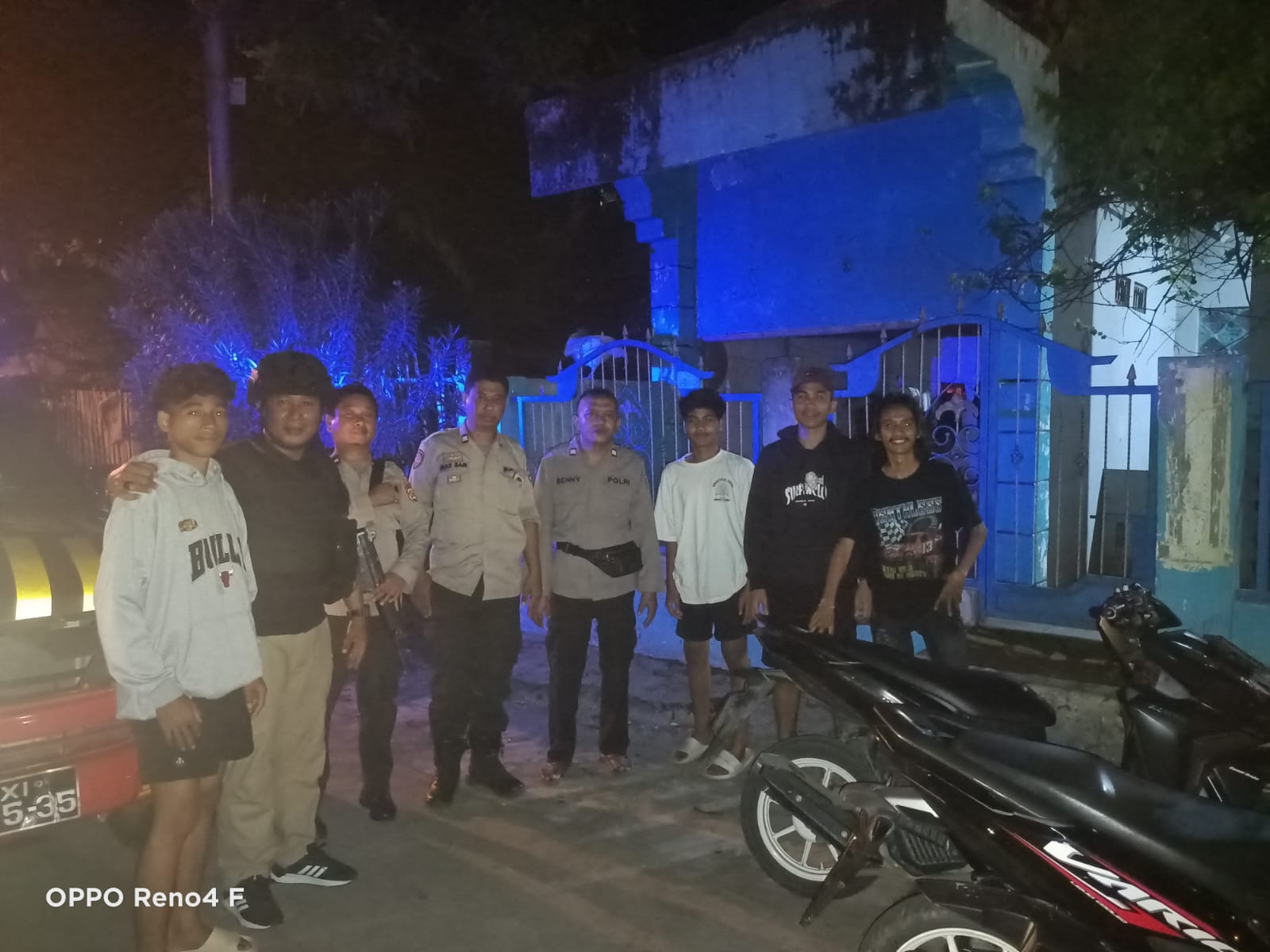 Personel menyambangi pemuda di Lingkungan Pali, Kelurahan Melayu, memberikan imbauan untuk menjaga kondusivitas wilayah, tidak membawa senjata tajam, dan berpartisipasi dalam upaya menjaga keamanan bersama Polsek Asakota.