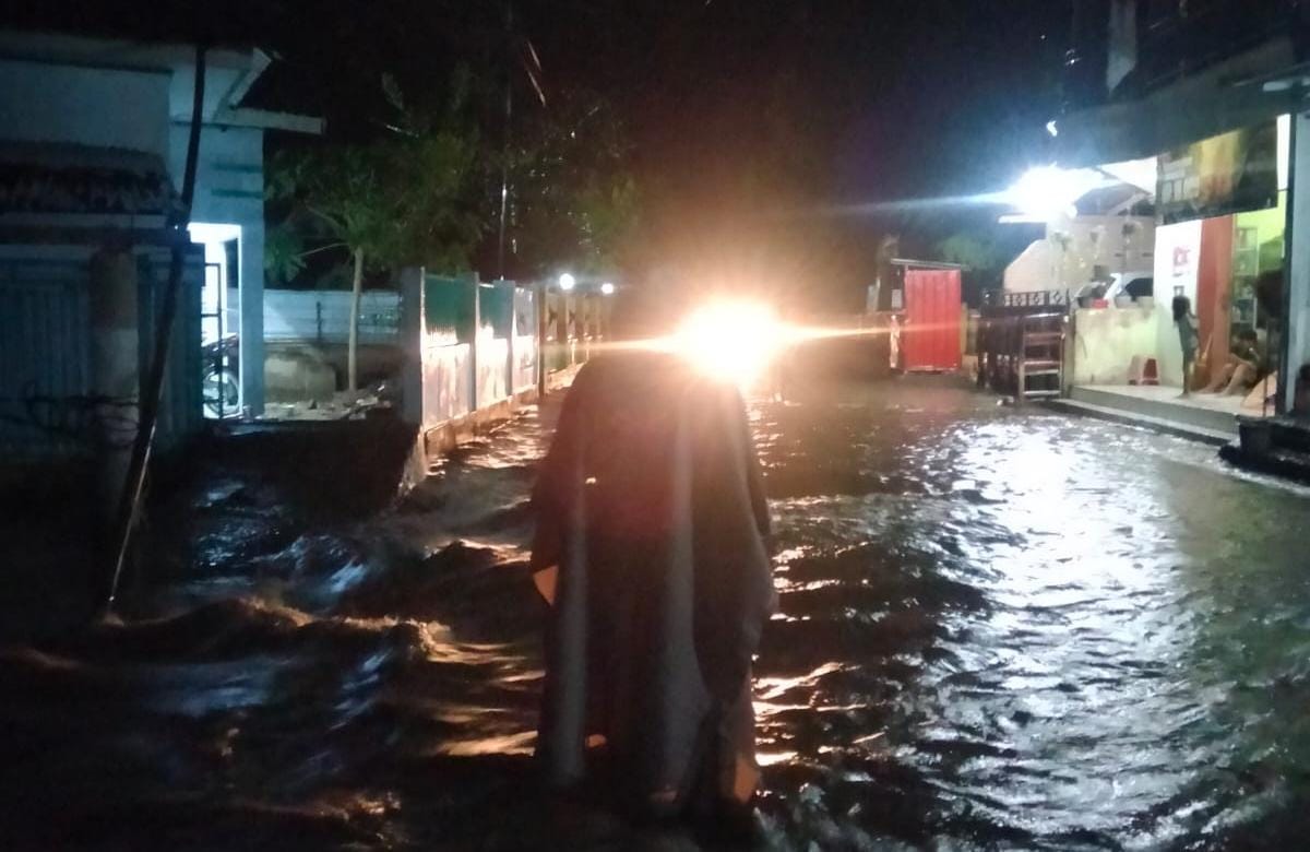 Bima, NTB (21/12) – Tingginya intensitas hujan yang mengguyur Kabupaten Bima sejak pagi tadi menyebabkan banjir hingga meluap ke jalan raya dan pemukiman warga.