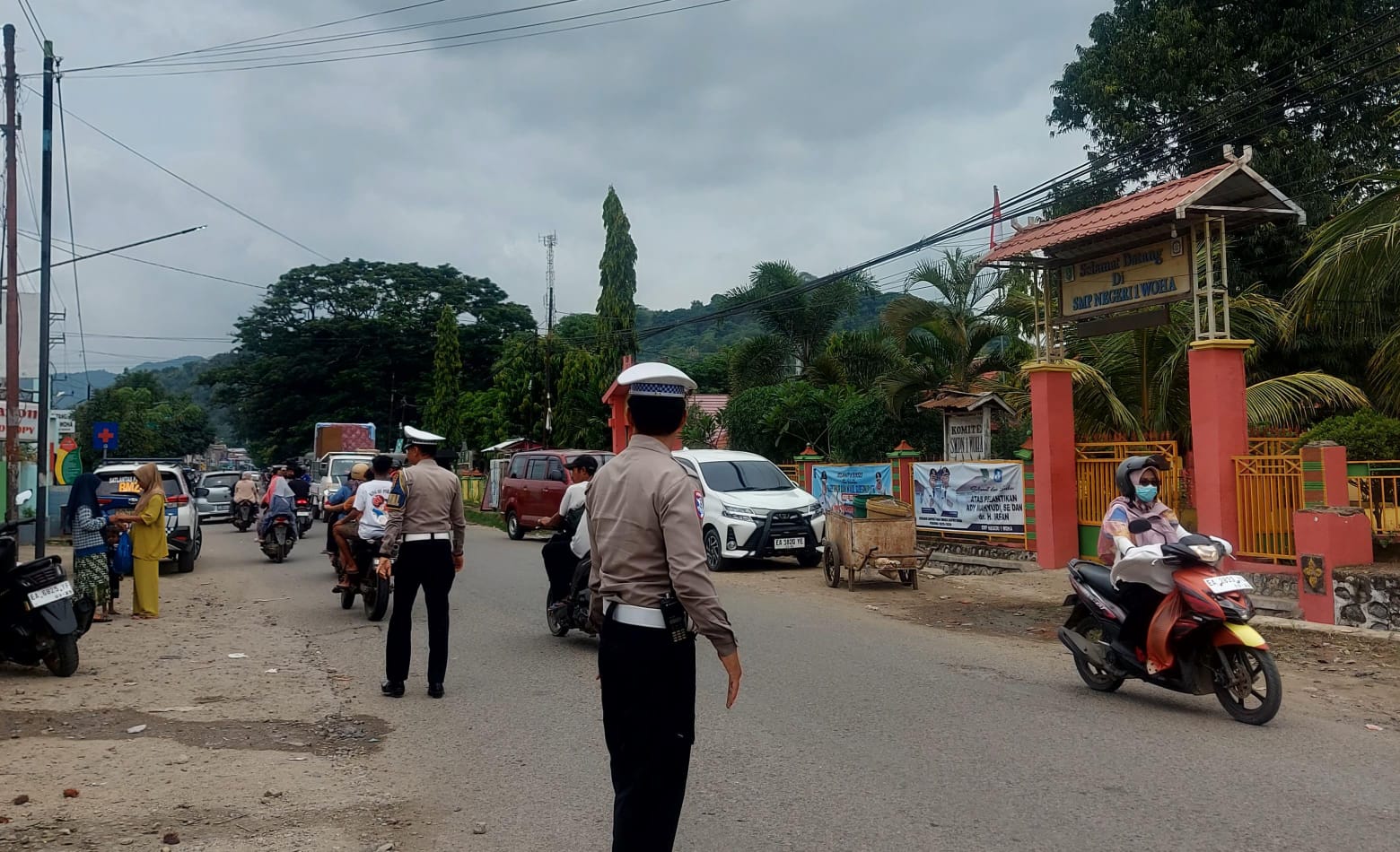 Cegah kemacetan, Personil Pos Pam Operasi Ketupat Rinjani 2025 Simpang 3 Tente Polres Bima Polda NTB melaksanakan pelayanan penjagaan pengaturan (Gatur) lalu lintas.