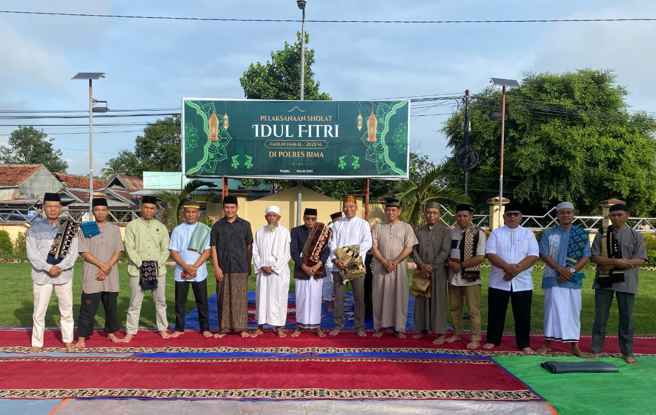 Bima, NTBB (2 April 2025) – Bertempat di Lapangan Polres Bima Polda NTB Kapolres Bima AKBP Eko Sutomo, S.I.K., M.I.K., menggelar Sholat Idul Fitri dan halalbihalal bersama Warga masyarakat, Senin (31/03/2025) sekira pukul 07.00.Wita