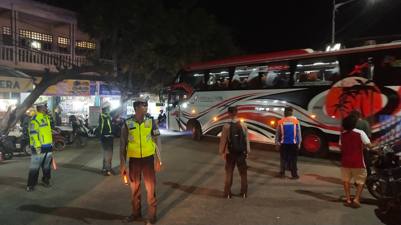 Kota Bima, NTB (5 April 2025) – Dalam rangka menciptakan situasi yang aman dan tertib pada malam hari, Personel Gabungan Pos Pelayanan Idul Fitri 2025 dan Polsek Rasanae Barat Polres Bima Kota melaksanakan kegiatan Strong Point Malam pada Jumat, 4 April 2025, sekitar pukul 19.30 WITA. Kegiatan dilaksanakan di pintu gerbang Posyan Idul Fitri yang berlokasi di Terminal Dara, Kota Bima.