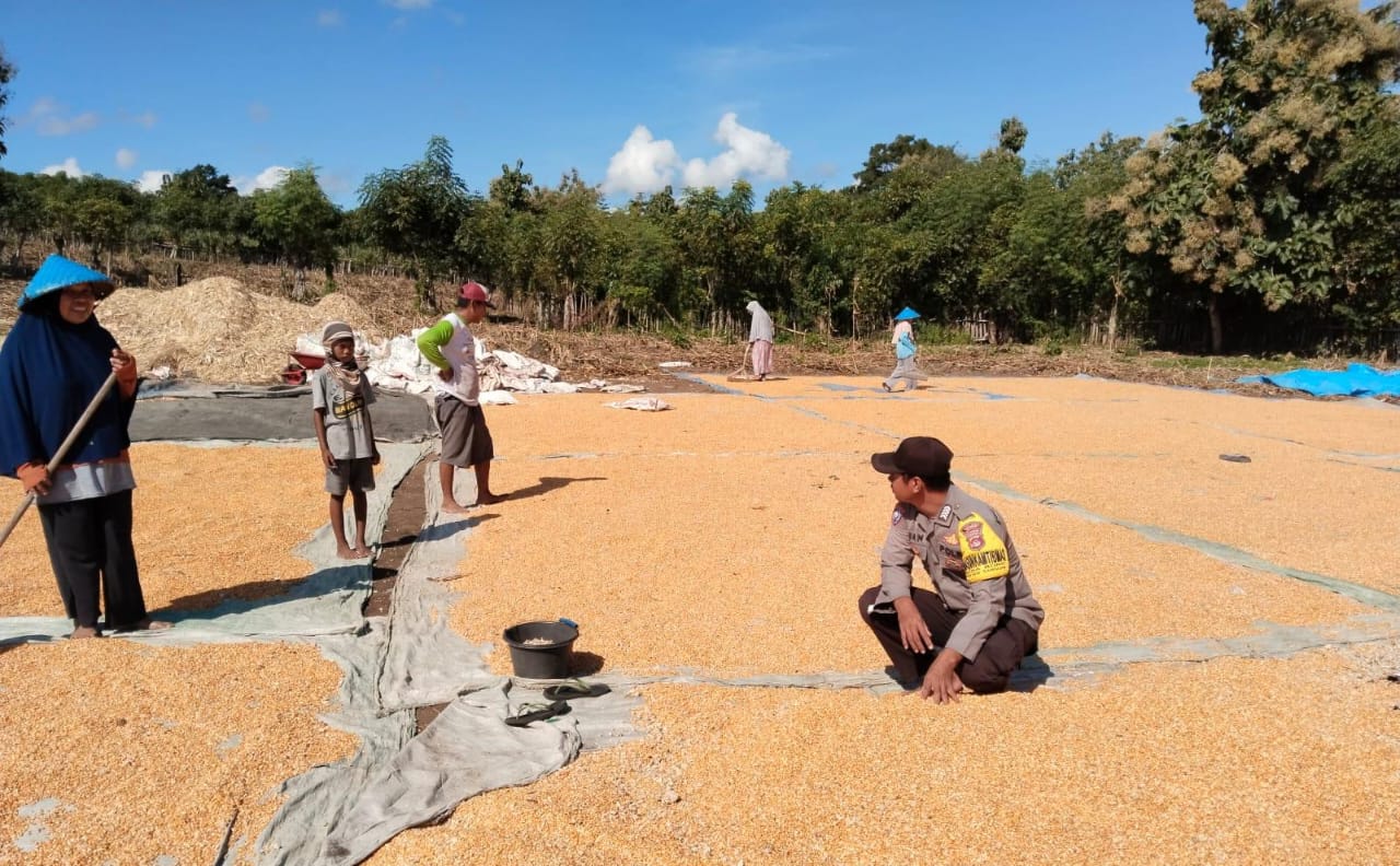 Bima, NTB (9 April 2025) – Berseragam lengkap dan dibawa terik matahari Bhabinkamtibmas Polsek Sanggar Polres Bima Polda NTB Bripka Pebrianto SH, bantu mengeringkan jagung milik warga binaan.