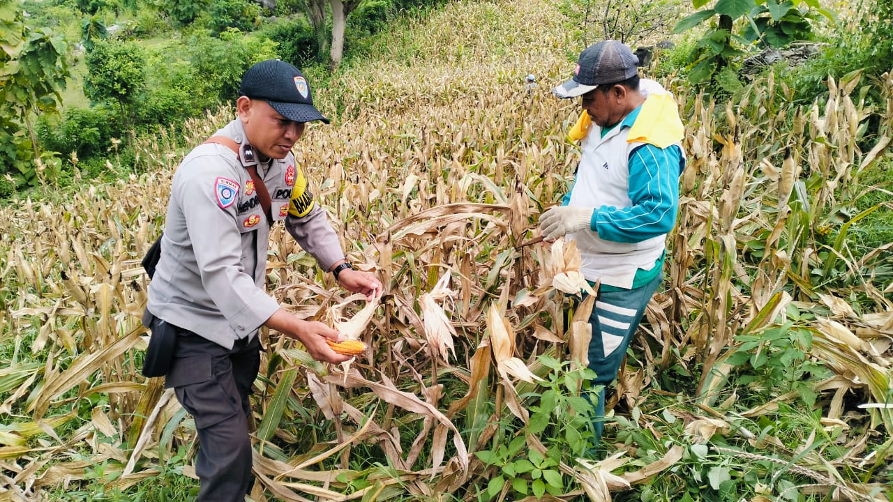 Bhabinkamtibmas Polsek Rasanae Barat Bantu Warga Panen Jagung di Sambinae