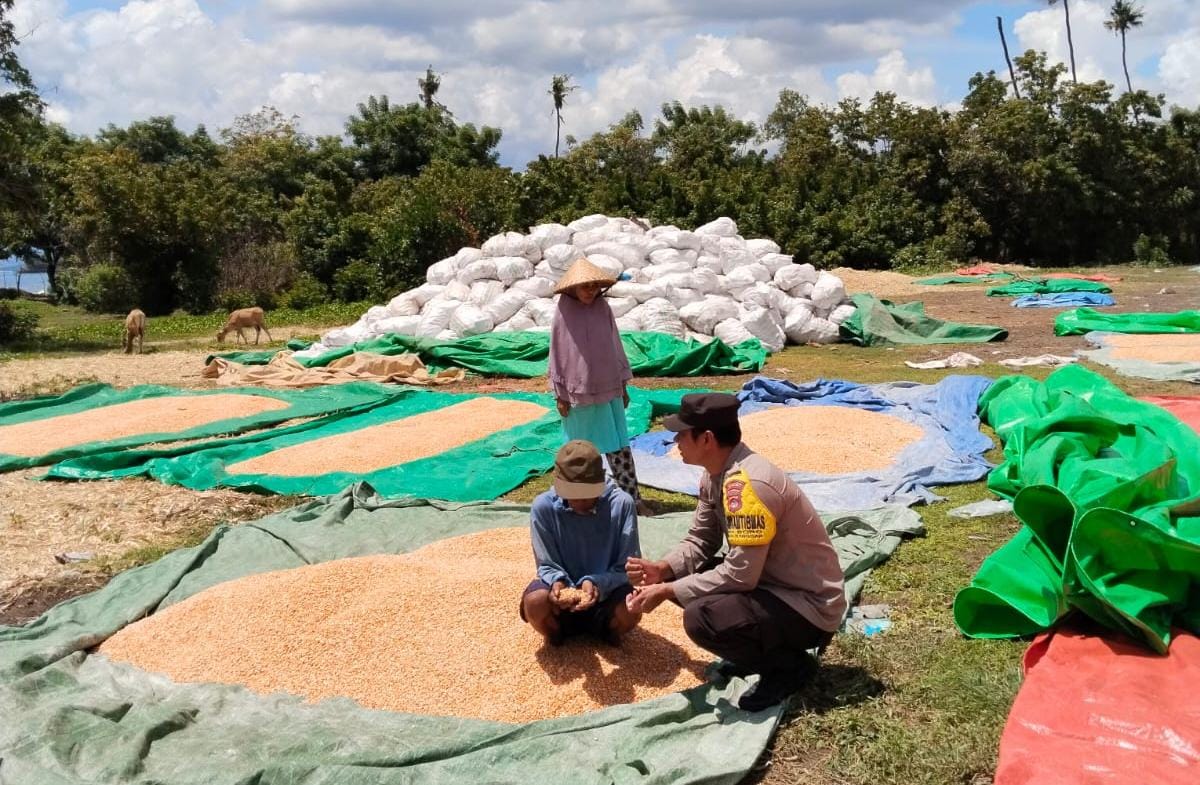 Bhabinkamtibmas Polsek Sanggar, Pantau dan Bantu Jemur Jagung Warga di Desa Binaan