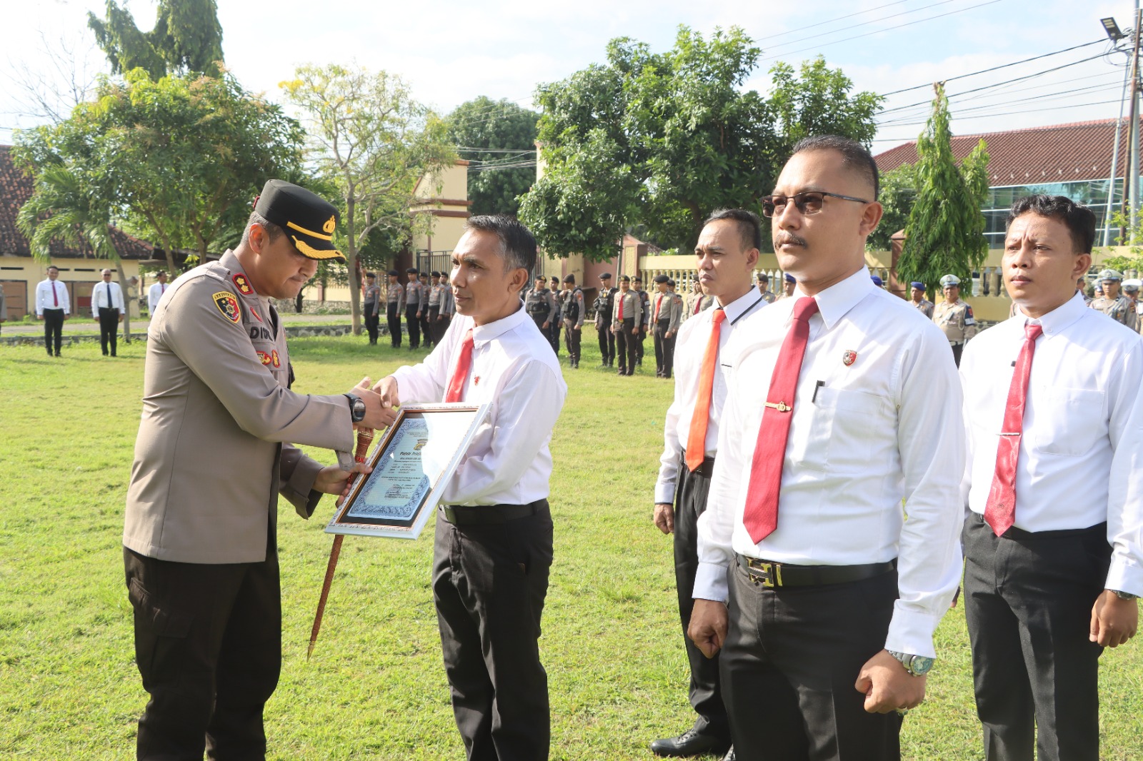 Kota Bima, NTB (29 September 2025) – Kapolres Bima Kota AKBP Didik Putra Kuncoro S.I.K., M.Si. memberikan penghargaan kepada 12 personel Polres Bima Kota yang dinilai berprestasi. Penghargaan tersebut diberikan kepada 1 perwira dan 11 bintara dalam upacara di Lapangan Apel Presisi Mapolres Bima Kota pada Senin (29/9/2025).