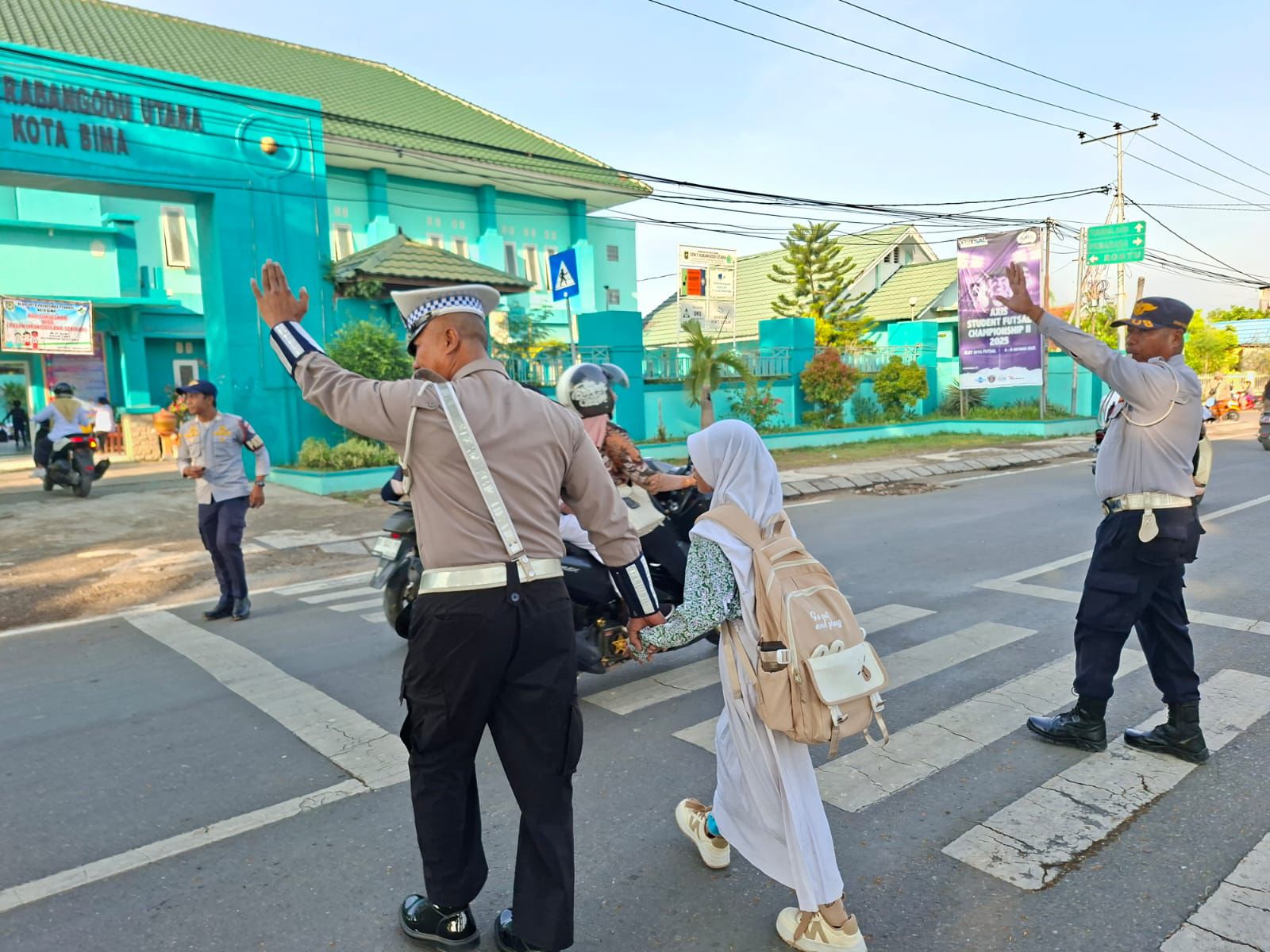 Kota Bima, NTB (22 oktober 2025) – Dalam upaya memberikan pelayanan prima kepada masyarakat serta menjaga kelancaran arus lalu lintas di pagi hari, Satuan Lalu Lintas (Satlantas) Polres Bima Kota melaksanakan kegiatan Rawan Pagi dengan membantu menyeberangkan pejalan kaki, anak-anak sekolah, dan pengguna jalan lainnya.