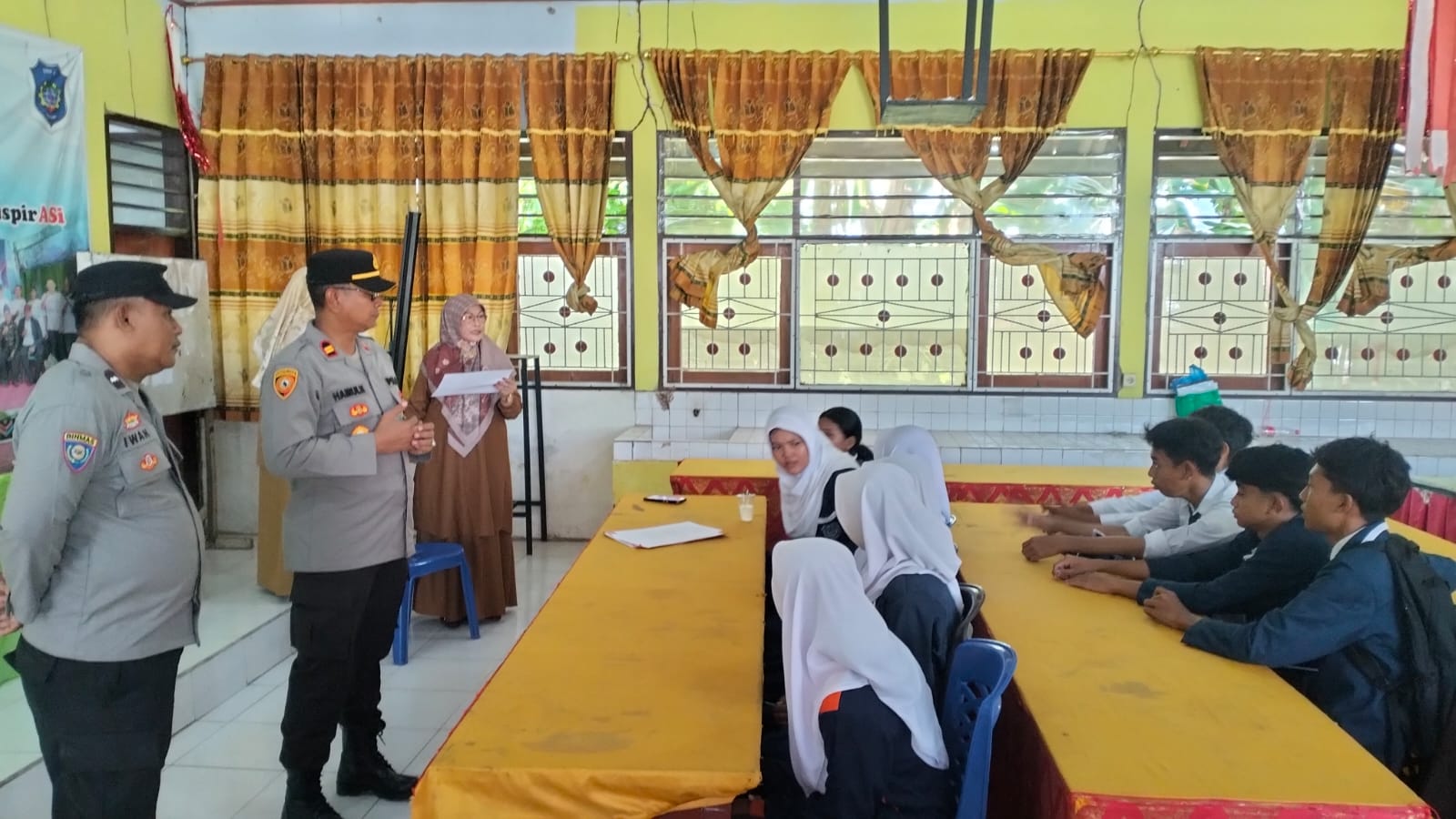 “Wakapolsek Rasanae Barat memberikan himbauan kepada siswa SMPN 2 Kota Bima sebagai calon siswa SMA Kemala Taruna Bhayangkara. Beliau menekankan agar para siswa segera melakukan pendaftaran secara online. Jika ingin mendaftar langsung melalui Polres, para siswa dapat meminta pendampingan dari Bhabinkamtibmas setempat,” jelas Kasi Humas.